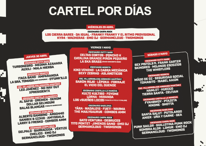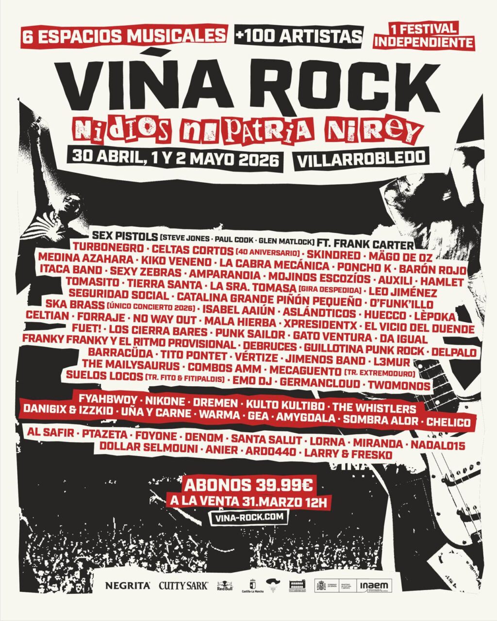 Comunicado oficial Viñarock 2026: VIÑA ROCK Ni dios ni patria ni rey 30 ABRIL, 1 Y 2 MAYO 2026 VILLARROBLEDO Sin Dios, ni patria, ni rey. Viña Rock vuelve a latir. Viña Rock inicia una nueva era. Volvemos a los orígenes con un promotor histórico y un nuevo equipo al frente totalmente independiente de KKR. […]